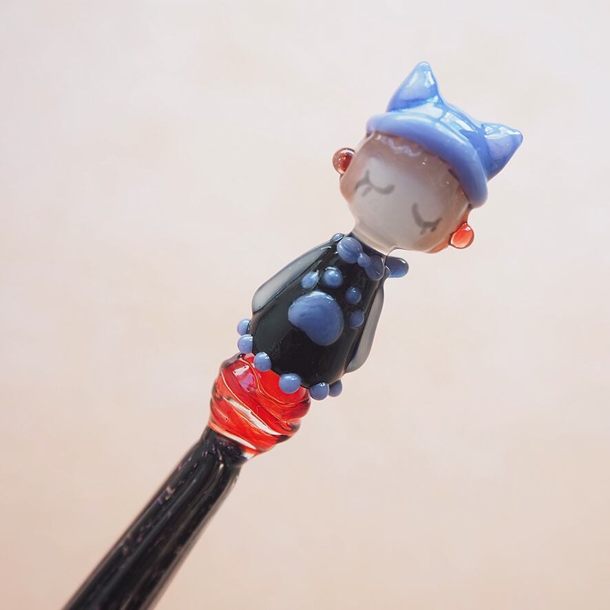 【まつぼっくり×glasskaoria】コラボガラスペン みぃちゃん紫